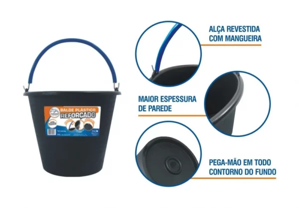 BALDE PLASTICO REFORÇADO 12LT METASUL
