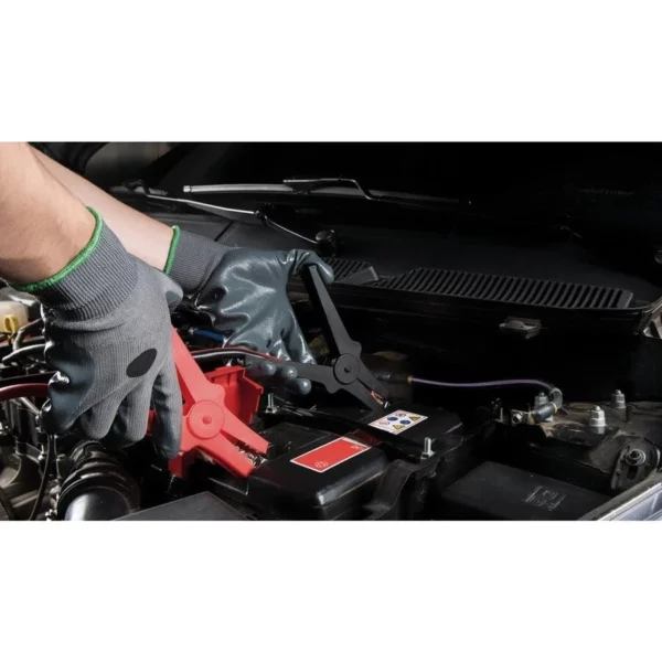 – Garras tipo jacaré para melhor fixação na bateria;