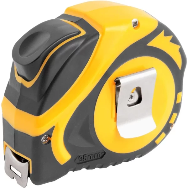 - Possui estojo anatômico em ABS com borracha termoplástica que confere maior resistência e conforto no manuseio e fita em aço com pintura fosca antirreflexo e graduação em milímetros/polegadas, facilitando a leitura e proporcionando maior precisão. Conta também com sistema autotrava, que mantém a fita travada quando esticada e facilita a leitura, alça em nylon e presilha para cinto, auxiliando no transporte e segurança durante o uso. Conta ainda com gancho ajustável.
